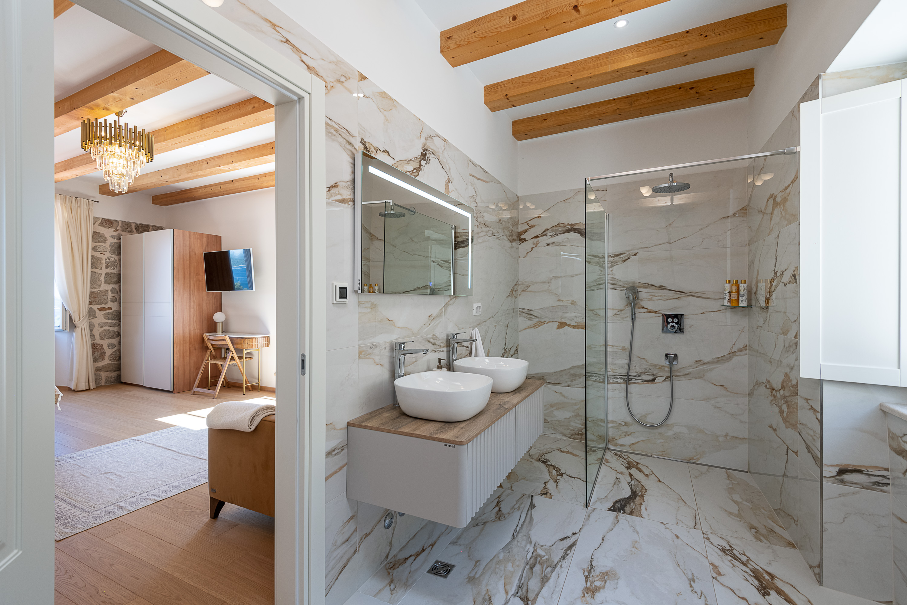 - Private walk-in shower
