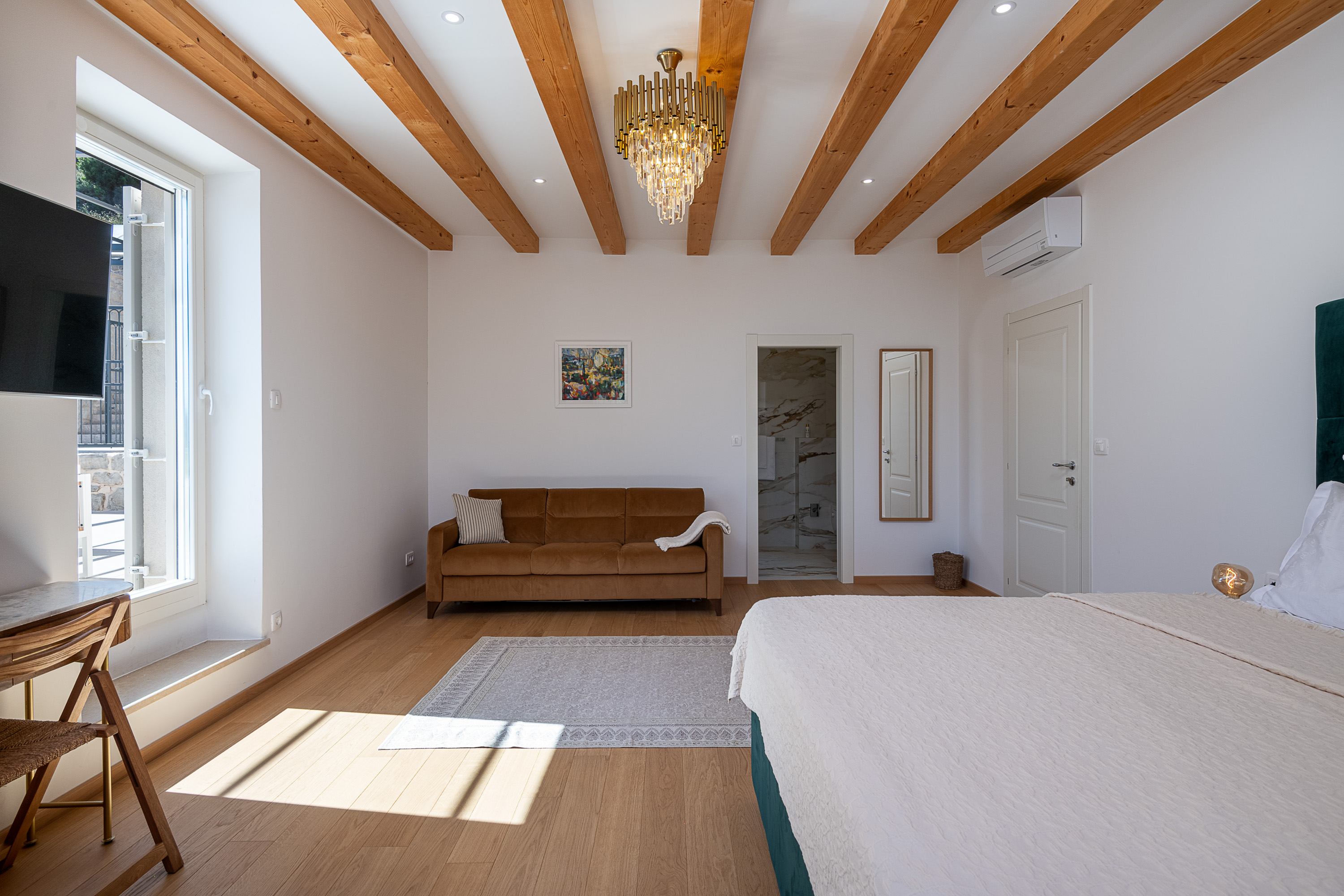 The sauna is the standout feature of this double room. The spacious double room features air conditioning, a terrace with sea views as well as a private bathroom boasting a walk-in shower. The unit has 2 beds.