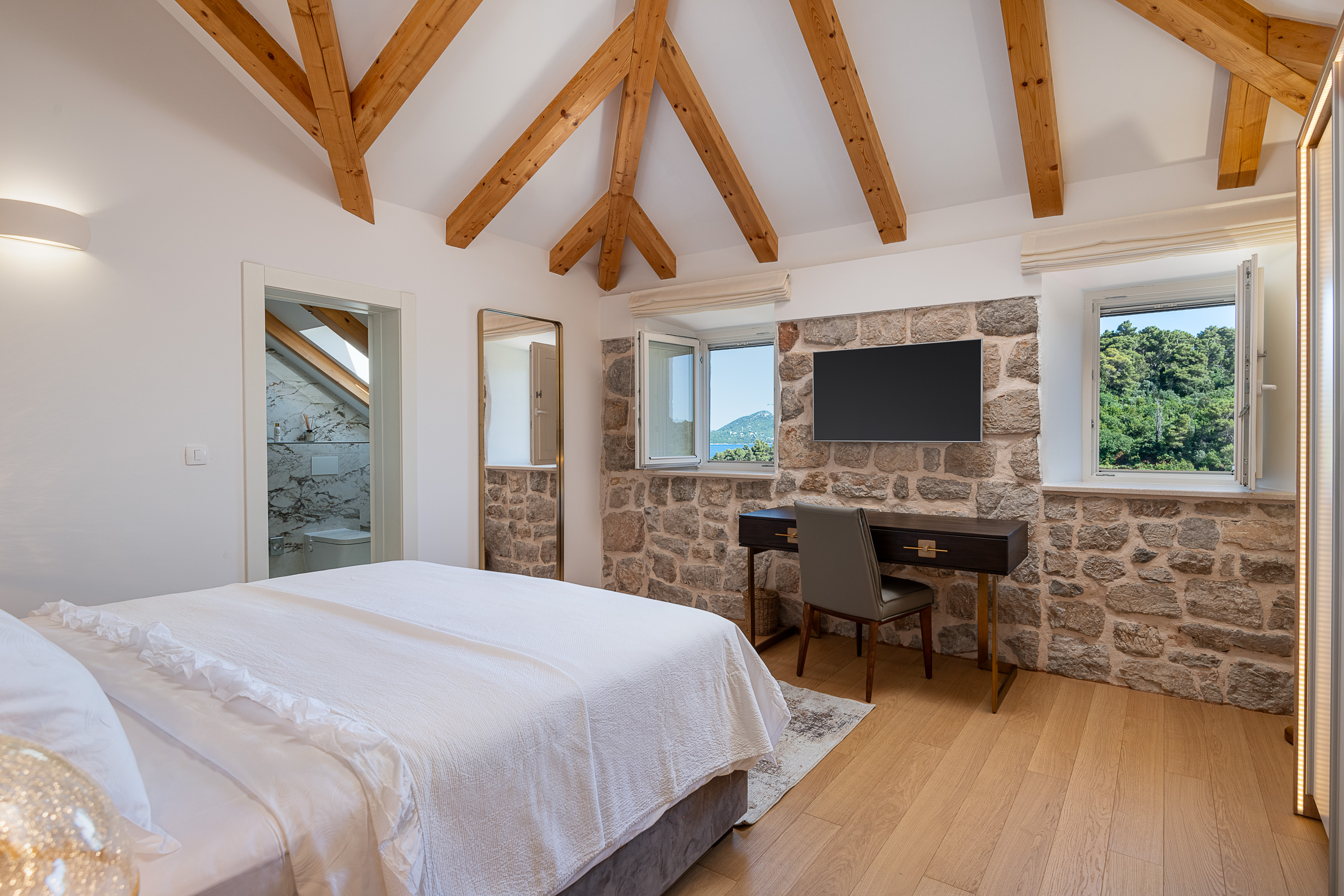 The room is on the villa’s highest floor, with the most breathtaking sea view in the entire property.